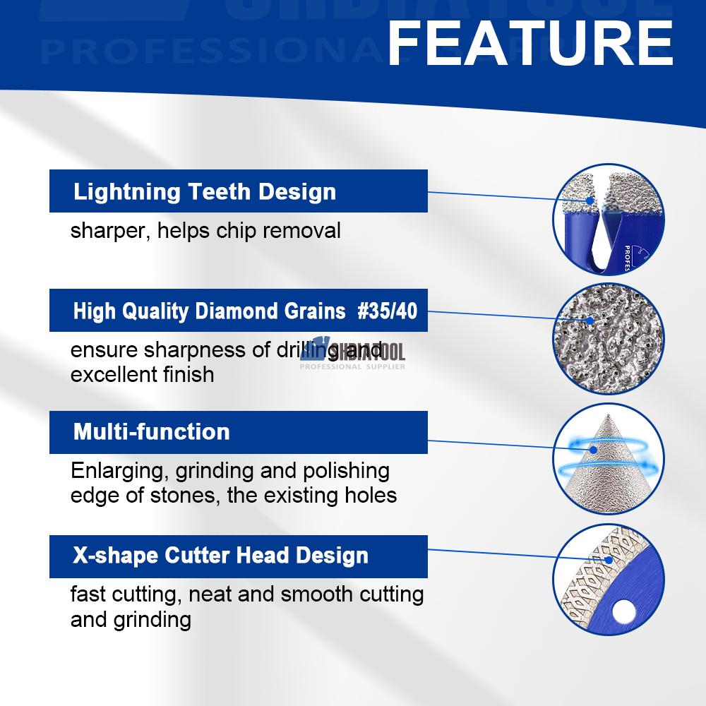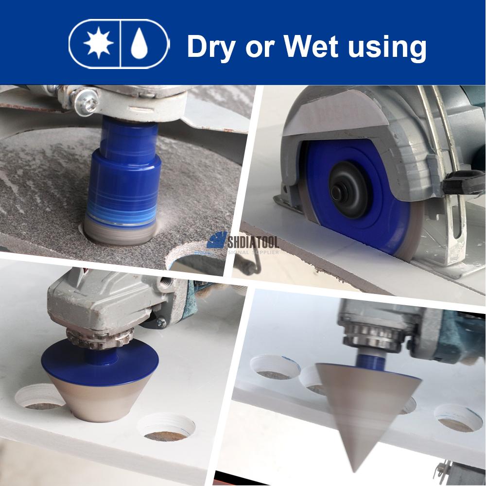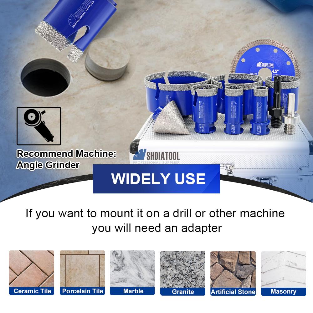 The combination of drill, chamfer,cut makes the work more efficient and allows you to drill, chamfer, mill and ream in multiple sizes with one set of tools.Suitable for any electric drill,hand drill,Bench Drill, When use Angle Grinder,please install angle grinder drill chuck.Worked great for dry drilling holes through porcelain ceramic tile,marble granite,stone,masonry,brick.