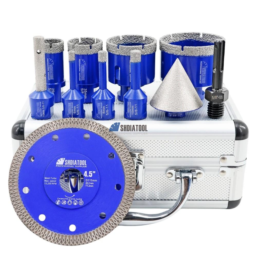 11PCS 5/8''-11 Vacuum Brazed Diamond Core Drill Bits Saw Blade Set Tile Diamond Hole Saw Kit for Granite Marble Drilling
