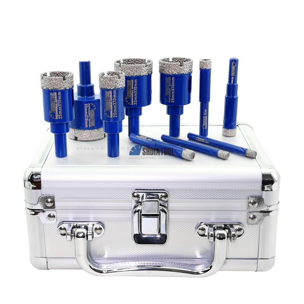 1.Vacuum brazing technology provides longer working life; 2.Wet and dry, with comprehensive specifications and a wide range of applications, it can meet different needs; 3.Using high-quality base steel and diamond, combined with scientific ratios to create a steady increase in efficiency; 4.20MM and above 4 U groove design, conducive to debris and heat dissipation, better performance; 5.6-14MM plug cooling wax, play the role of cooling lubrication; 6.Handle aluminum box packaging easy to carry. |