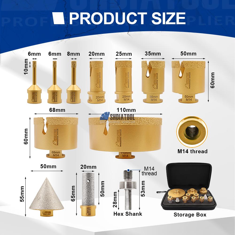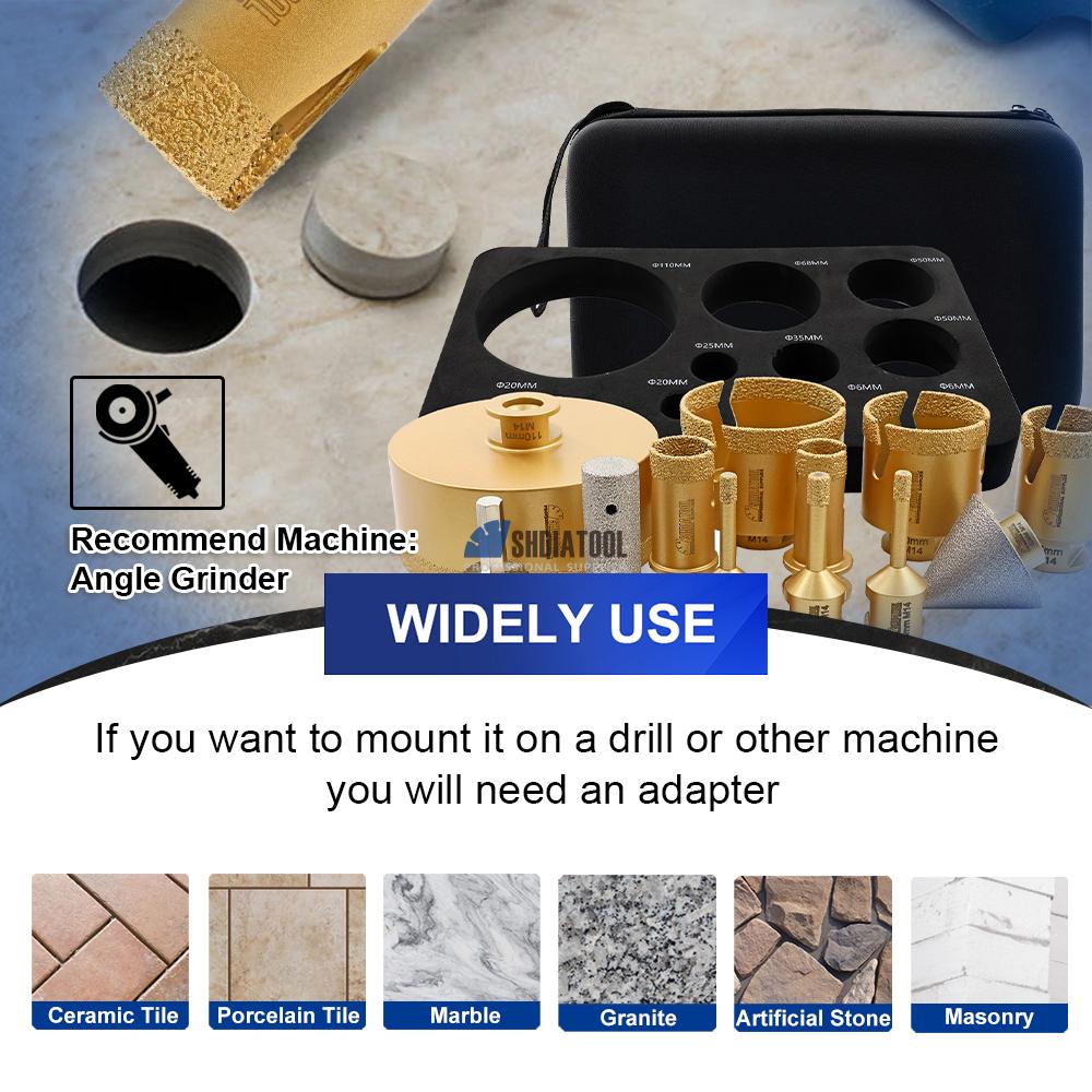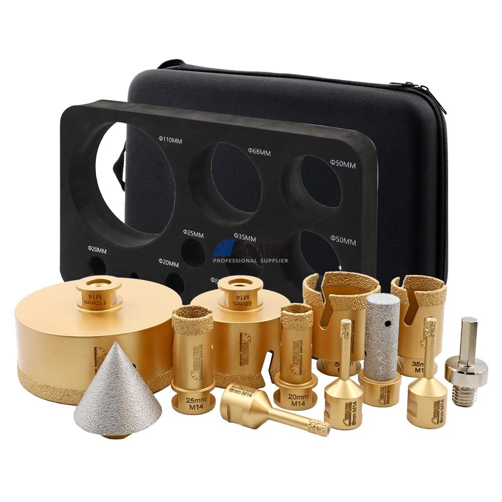 12PCS Vacuum Brazed Diamond Drill Core Bits Set Chamfer Finger Milling Beveling Bit Hole Saw Kit for Marble Granite