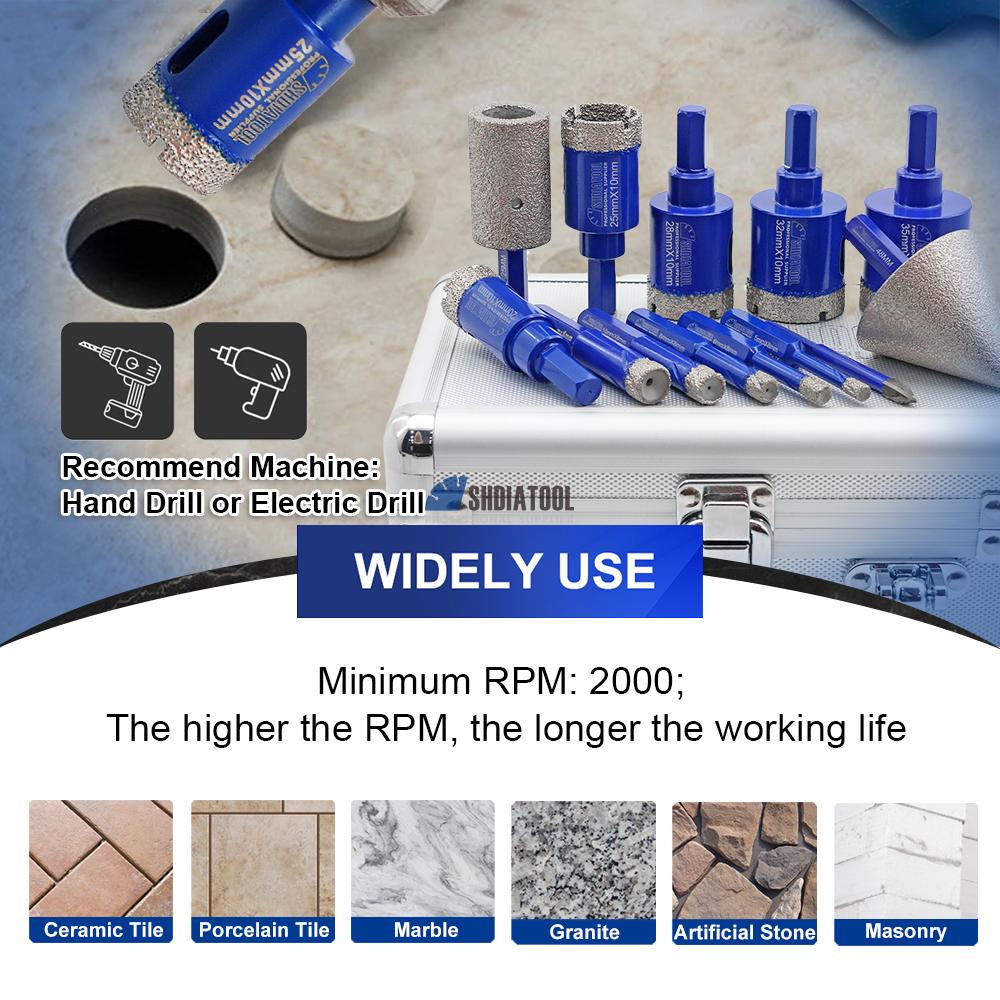 Dry/wet drilling for porcelain tile, granite, marble, ceramic tile |