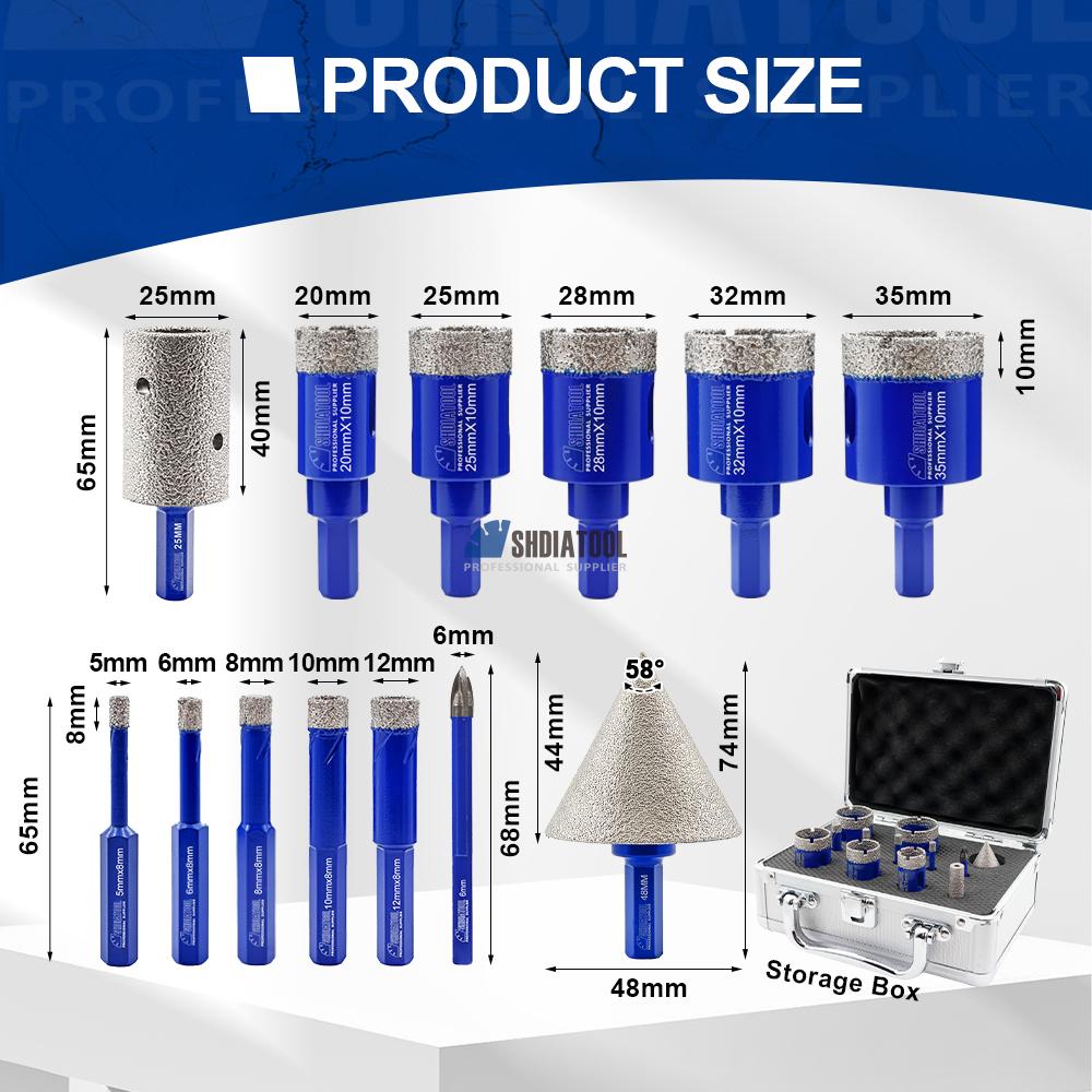 13PCS 5-35MM Vacuum Brazed Diamond Core Drill Bits Set Hex Shank Manufacturer Hole Cutter for Tile Marble Granite Ceramic
