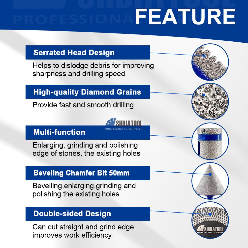 Beveling Chamfer: The #80 fine-grained diamond, through fine grinding, can produce excellent surface effect on the edge of the hole, smooth and clean;