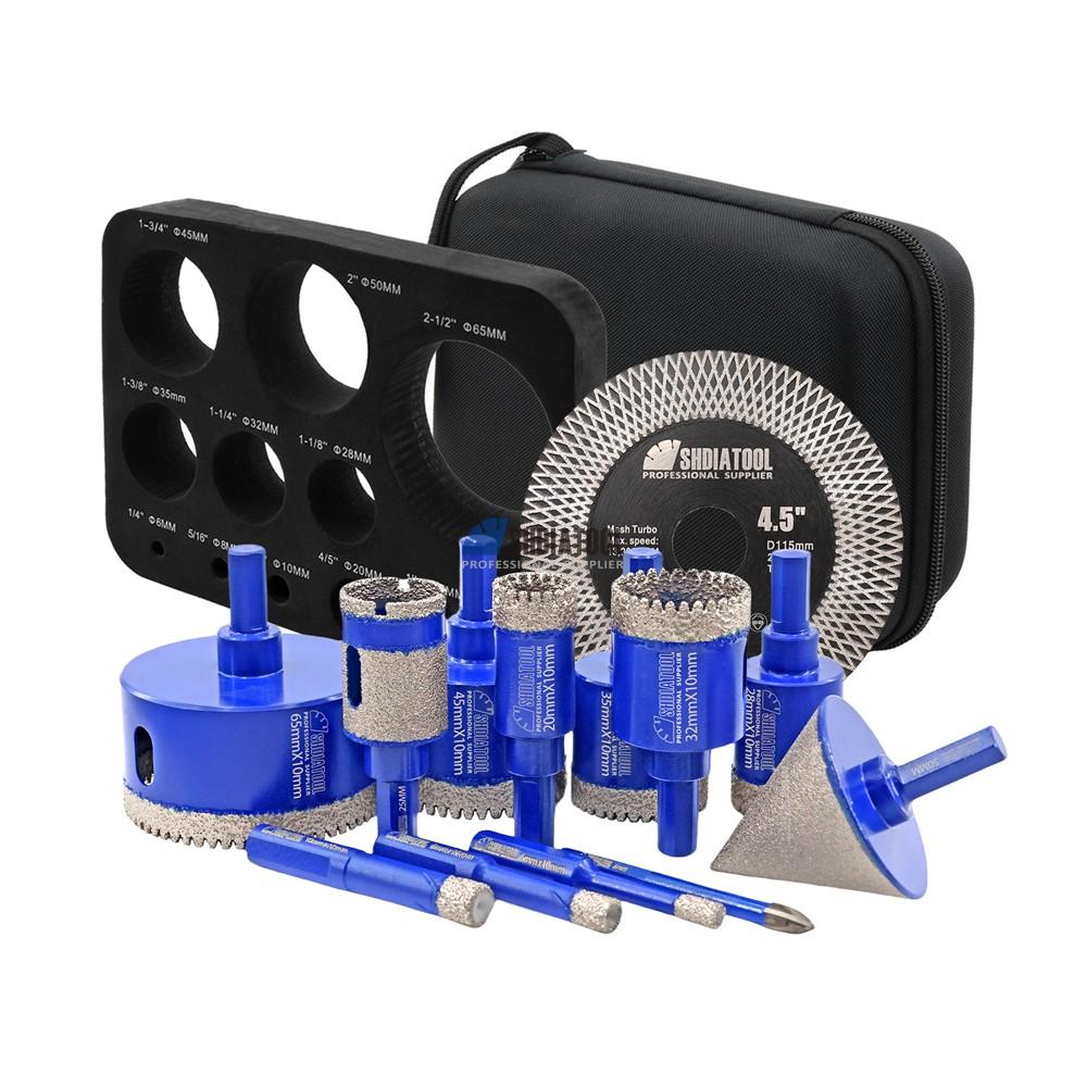13PCS Triangle Shank Vacuum Brazed Diamond Core Drill Bit Beveling Chamfer Milling Cutter Saw Blade Set for Tile Marble Granite
