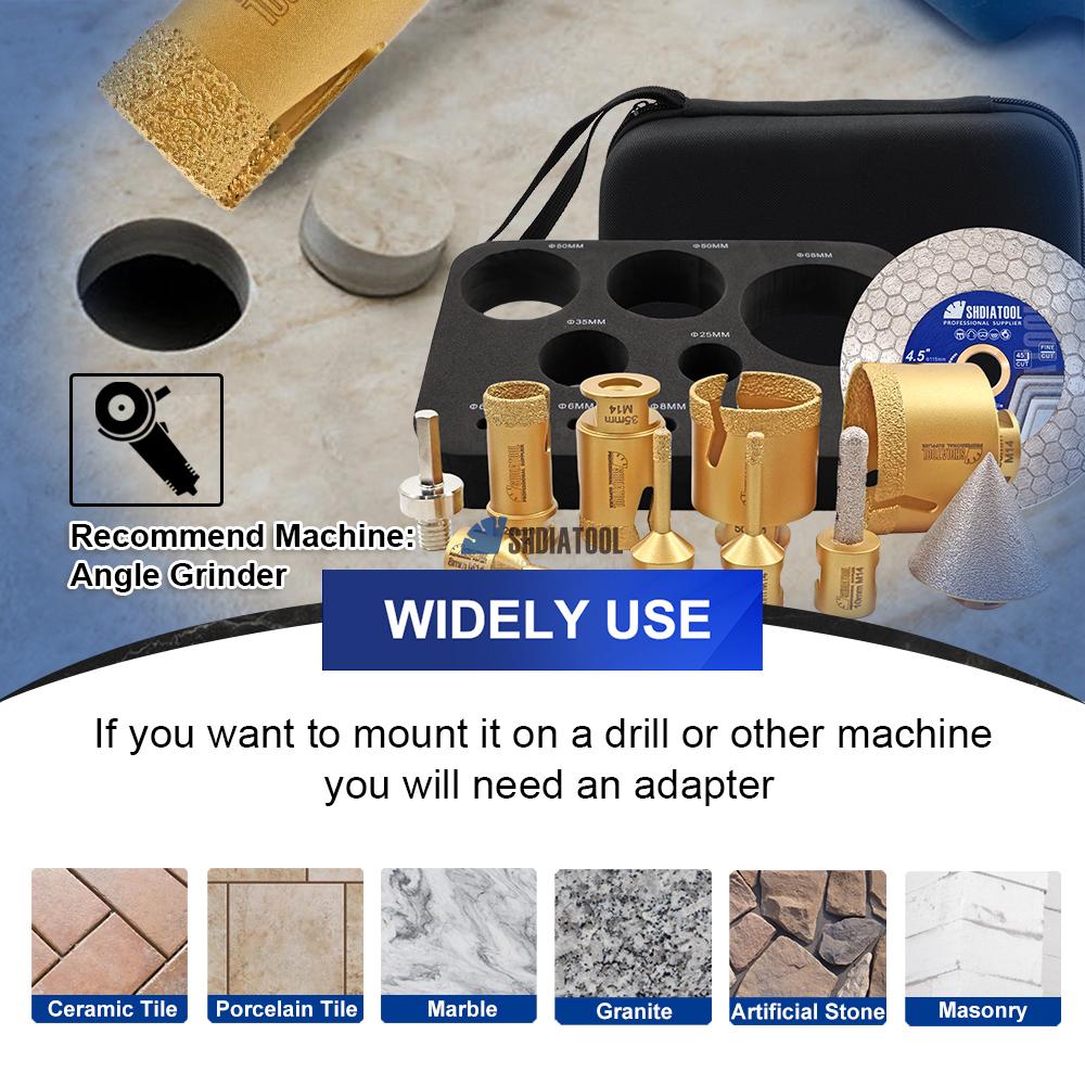 1Set/11PCS 6-68MM Vacuum Brazed Diamond Core Drill Bit /10MM Finger Milling Bit Cutter / 2" Beveling Chamfer / 115mm Saw Blade