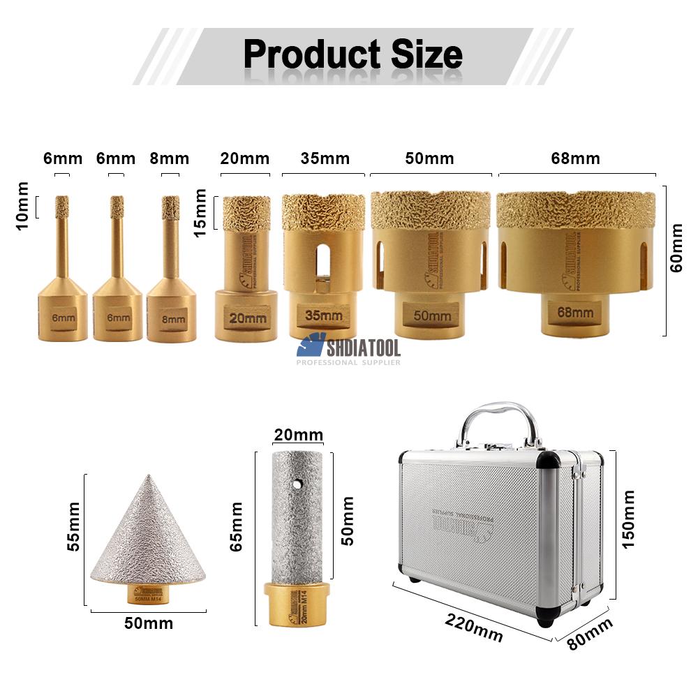 Diameter 6/6/8/20/35/50/68mm, Diamond height 10mm, Total length 60mm; |
