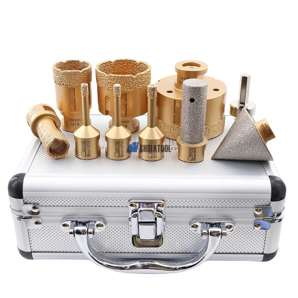 1set/9pcs Marble Diamond Hole Saw Cutter Vacuum Brazing Diamond Core Drill Bit Finger Milling Bit Beveling Bit Set for Tile