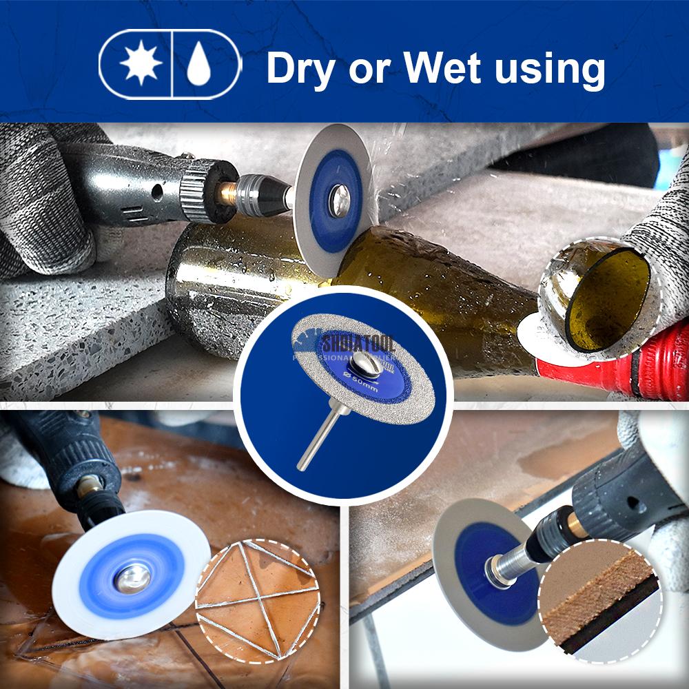 1. Choose high quality diamond raw materials, vacuum brazing process, long life, more durable; 2. 1mm ultra-thin design, in cutting glass, jade, crystal, ceramic tile, marble material, will not produce fracture damage to the surface of the object,cutting small and smooth, is a must-have tool for professionals and DIY craft enthusiasts; 3. Using high hardness matrix to meet the ultra-thin design while also able to provide excellent stability and impact resistance, providing efficient and stable work performance; 4.The cutting wheel is separated from the connecting rod, easy to change the cutting wheel when it is worn out, 3mm shank fits for mini grinder, mini drill. 5. Removable shank for reuse, can be paired with the purchase of a light hole saw blade; |