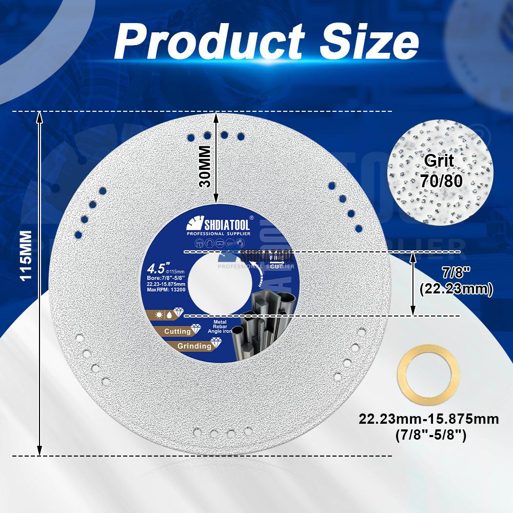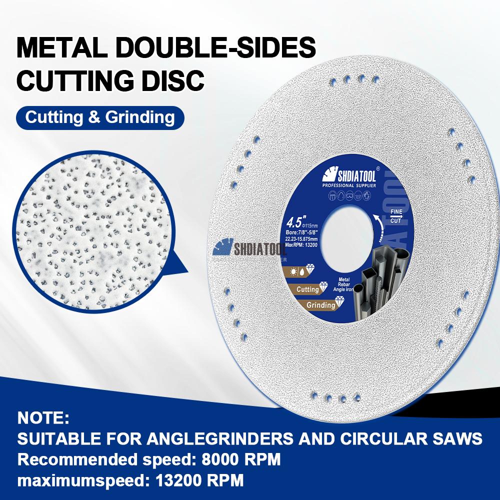engineered for precision cutting and grinding of hard metals, especially cast iron, rebar, and hardened steel. Featuring a 100% continuous diamond rim bonded via advanced vacuum brazing technology, it delivers smooth, chip-free cuts with superior durability and faster material removal. perfect for metal fabrication, construction, and industrial maintenance.