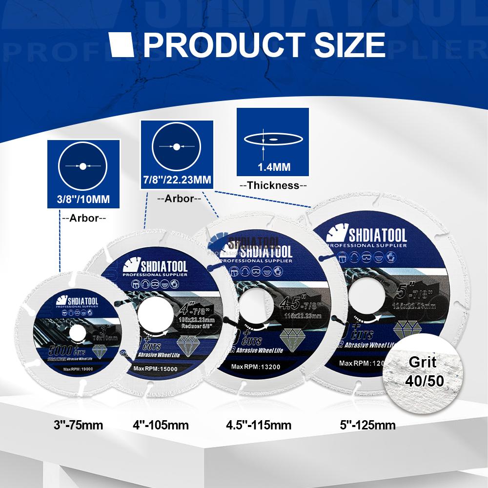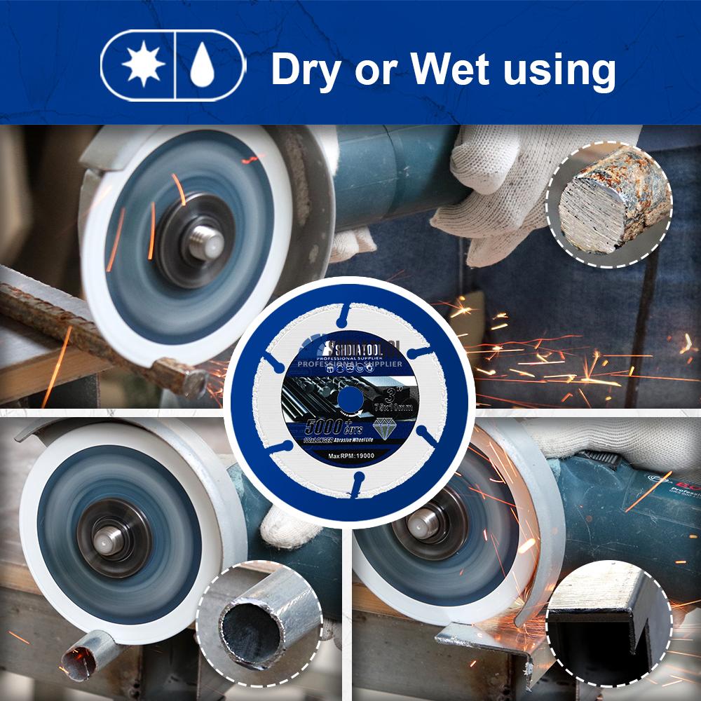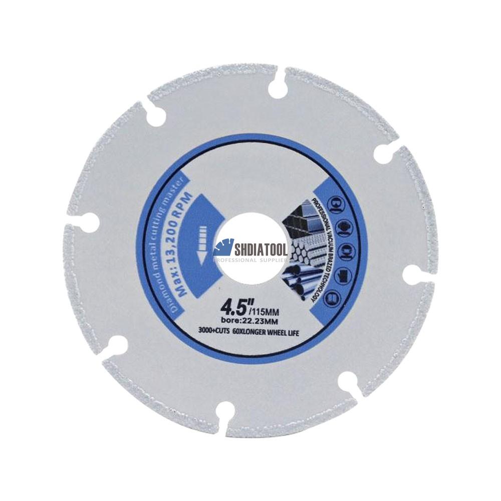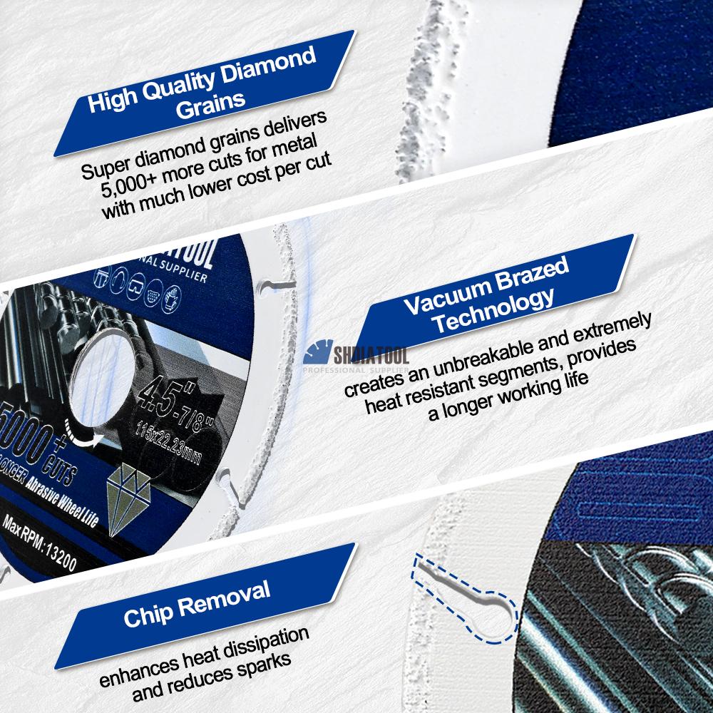 Multipurpose Dry Wet Vacuum Brazed Diamond Cutter Cutting Disc Saw Blade for Rebar Sheet Angle Iron Stainless Steel;Designed for cutting rebar, carbon steel, stainless steel, sheet metal, angle iron, cast iron, and other tough ferrous non-ferrous metals.The open-slot design improves cooling, reduces friction, and minimizes heat damage to the workpiece during continuous cutting.