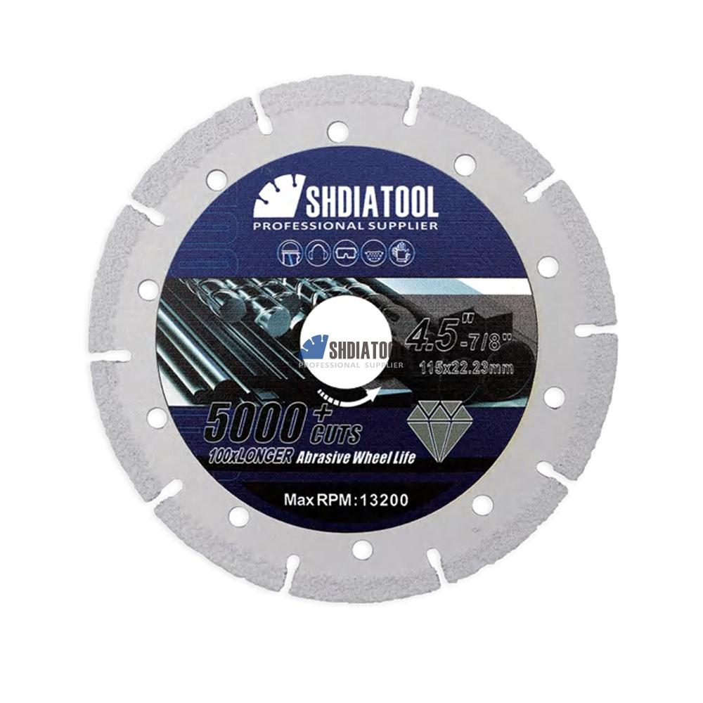 4.5inch/115mm Vacuum Brazed Diamond Segment Metal Saw Blade Cast Iron Cutting Grinding Abrasive Disc for Iron Rebar Angle Steel