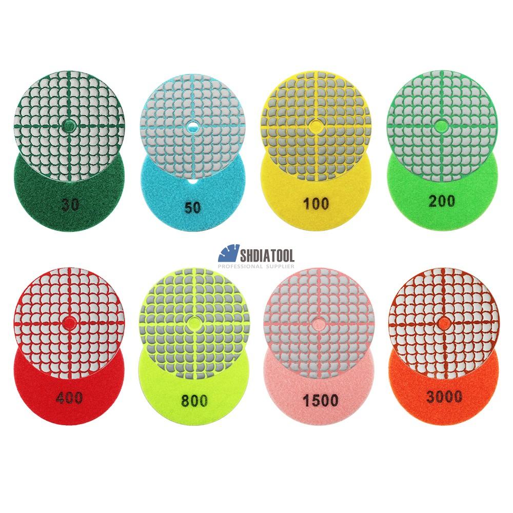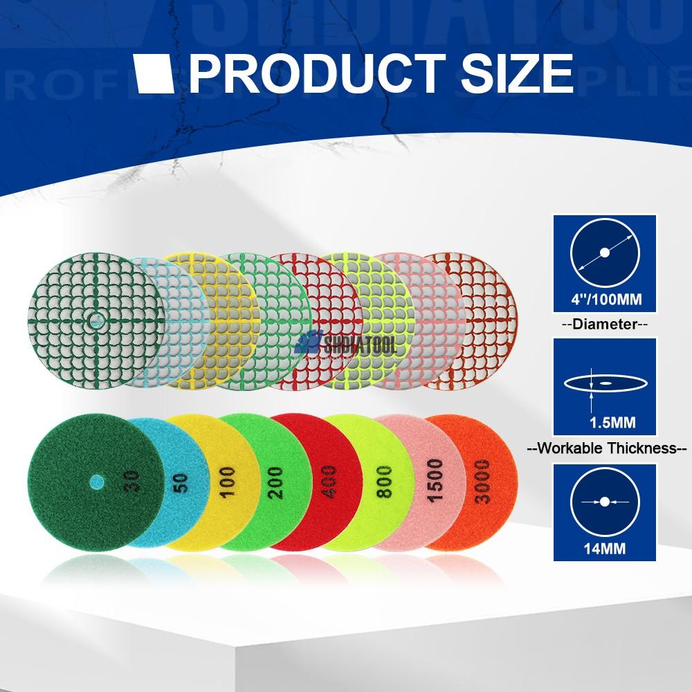 4in/100mm #30-3000 7 Steps Flexible Diamond Dry Polishing Pads Resin Bond Sanding Disc Abrasive Pads for Granite Quartz Marble