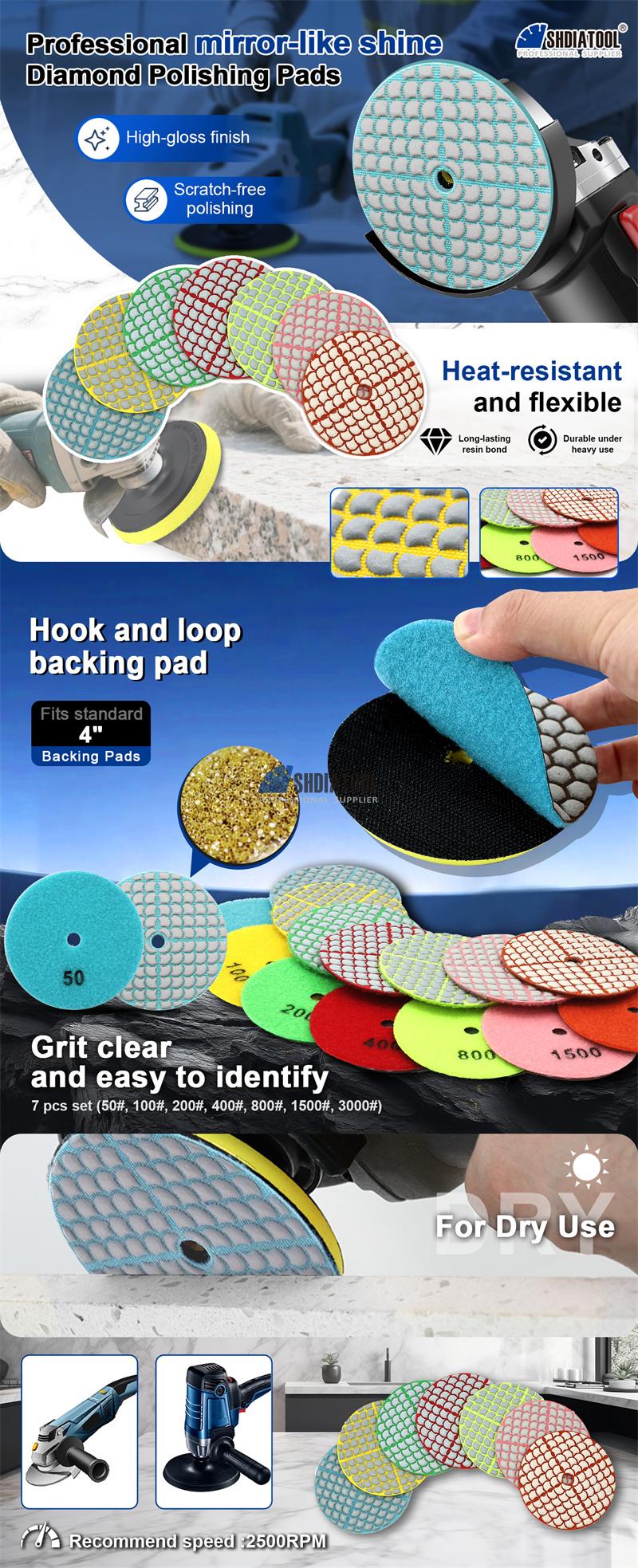 【HIGH PERFORMANCE】:These polishing pads are made of high quality diamond and resin. Fast grinding force, good flexibility,wear-resistance, high polishing efficiency and long service life;
