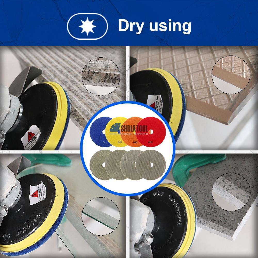 1.The 4 in diamond polish pads is perfect for kind of surface or edge of quartz, granite, marble, terrazzo floor, glazed tiles,vitrified tiles, natural stone, glass and concrete countertop and so on. 2.Dry working,convenient. |