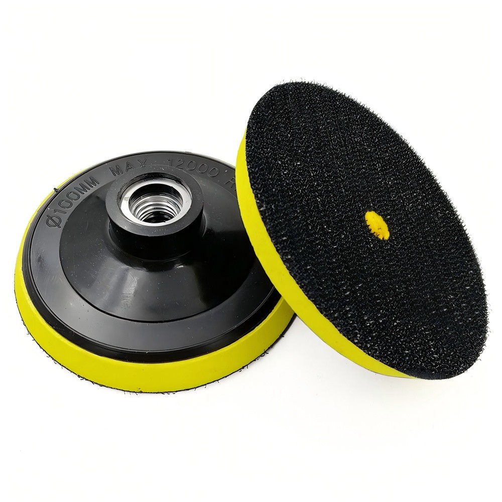 4 inch foam plastic base backer pad for diamond polishing pads, backing pad for grinder,Foam plastic body soft and strong, Cooper thread, strong body provide longer working life and can bear heavy duty working and a little flexible.Backer for diamond polishing pads, sanding disc, and some other Hook&Loop Back Holder grinding discs.