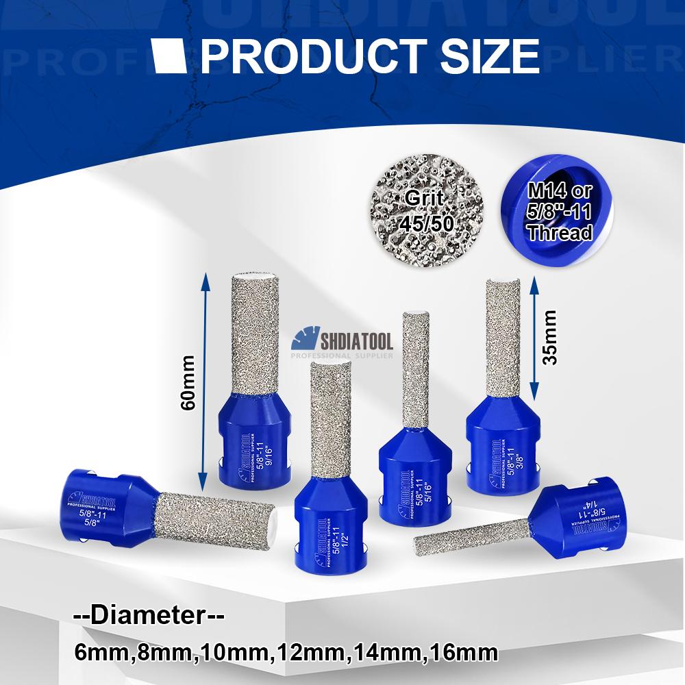 6/8/10/12/14/16mm Vacuum Brazed Diamond Finger Milling Bits Milling Cutter M14/5/8''-11 Cooling Wax for Enlarging Beveling Holes