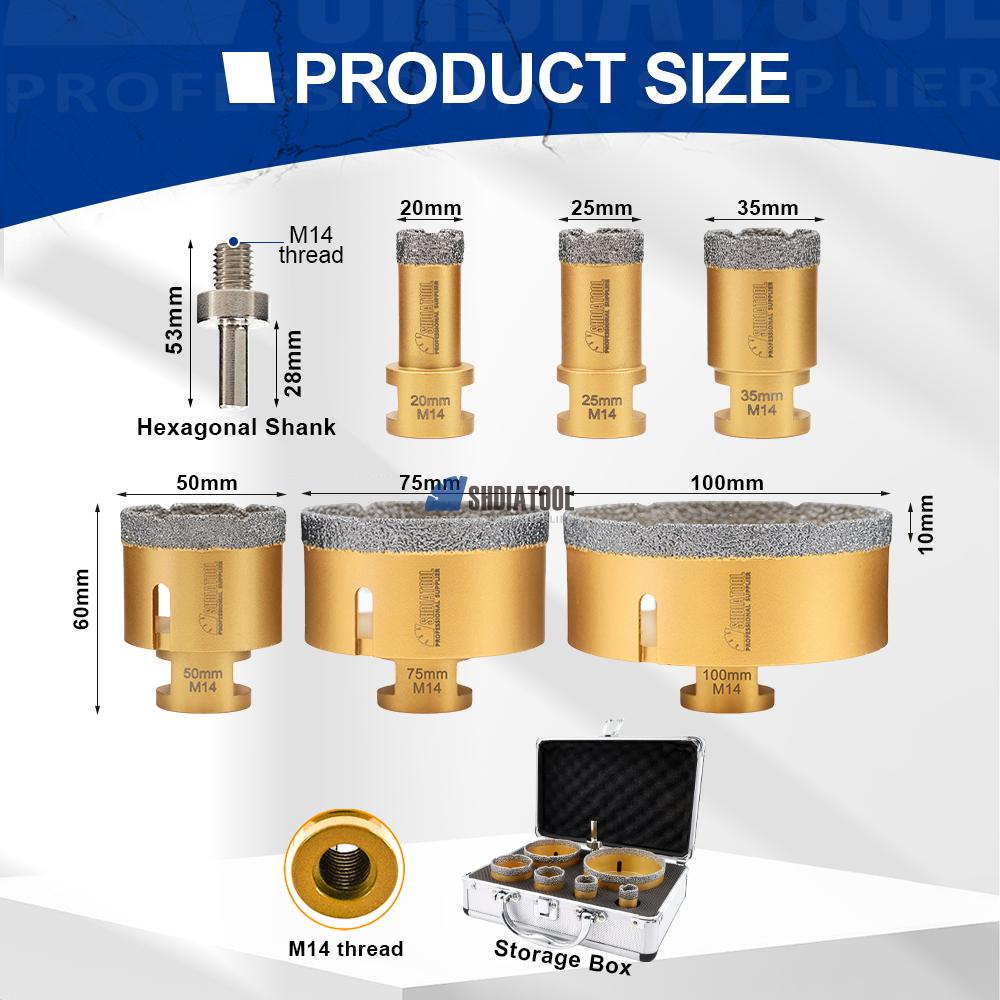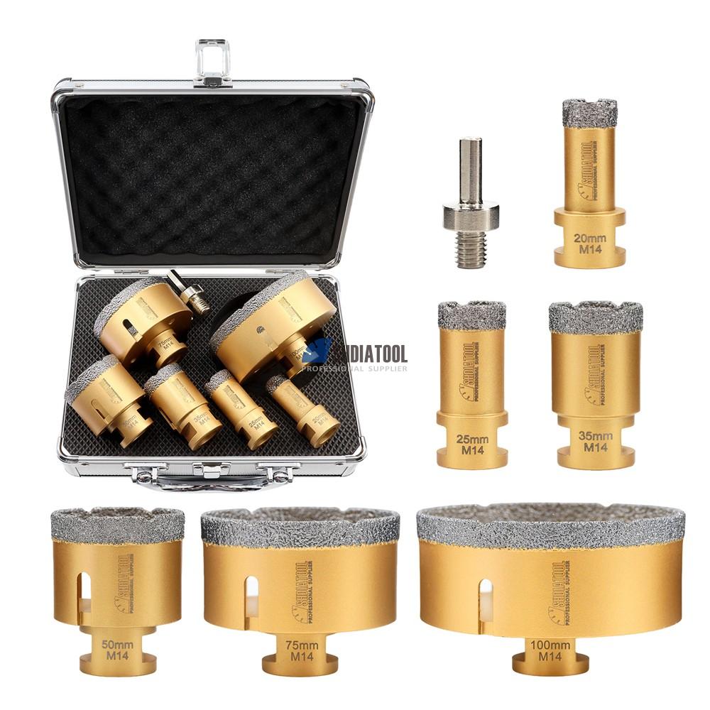 7PCS M14 Thread Dry/Wet Diamond Core Drill Bit Set Vacuum Brazed Hole Saw Diamond Drill Bit Kit for Tile Masonry Marble