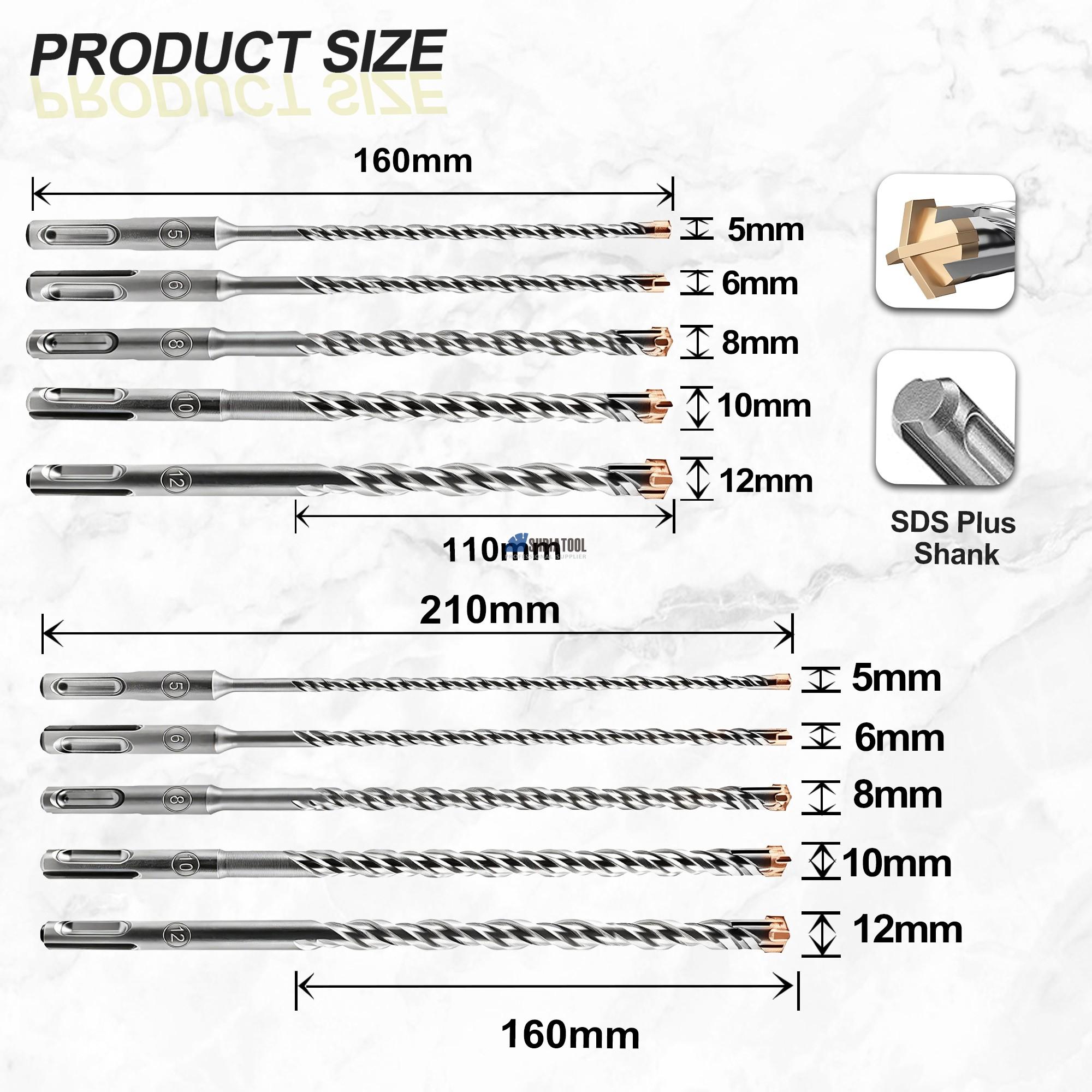 Alloyed Cutter SDS PLUS Shank Hammer Drill Bit for Masonry Concrete Brick Wall Drilling |