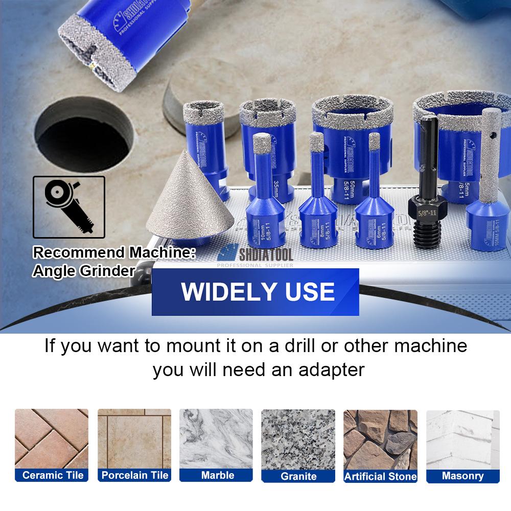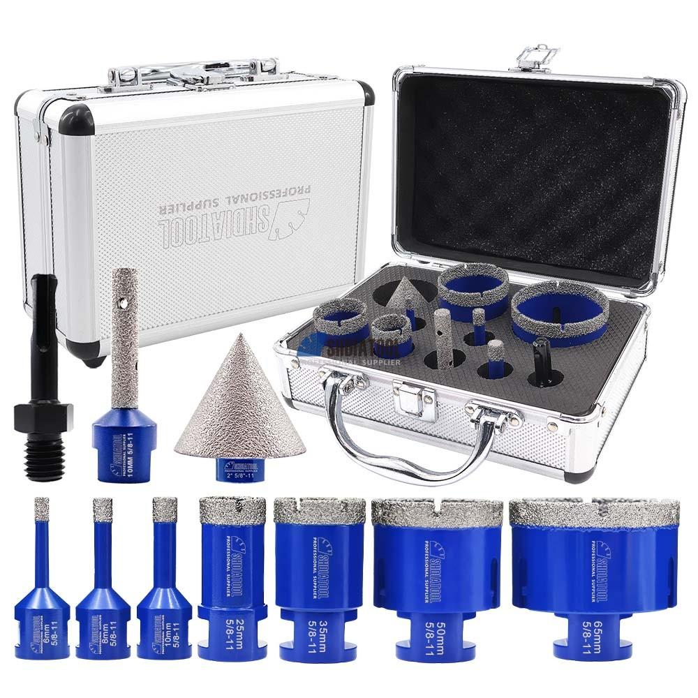 1set/10pcs 5/8''-11 Vacuum Brazed 6/8/10/25/35/50/65mm Diamond Drill Bits Set & Finger Milling Bit & 2'' Beveling Chamfer Bit