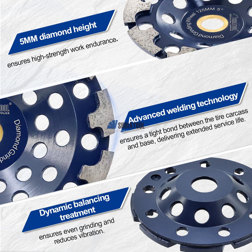 HF (High-Frequency) Welded Segments – Superior bond strength, resists segment loss under heavy load. T-Shaped Segments – Wider grinding surface + better heat dissipation for faster material removal. Efficient Dust & Slurry Ejection – Deep grooves between T-segments prevent clogging.