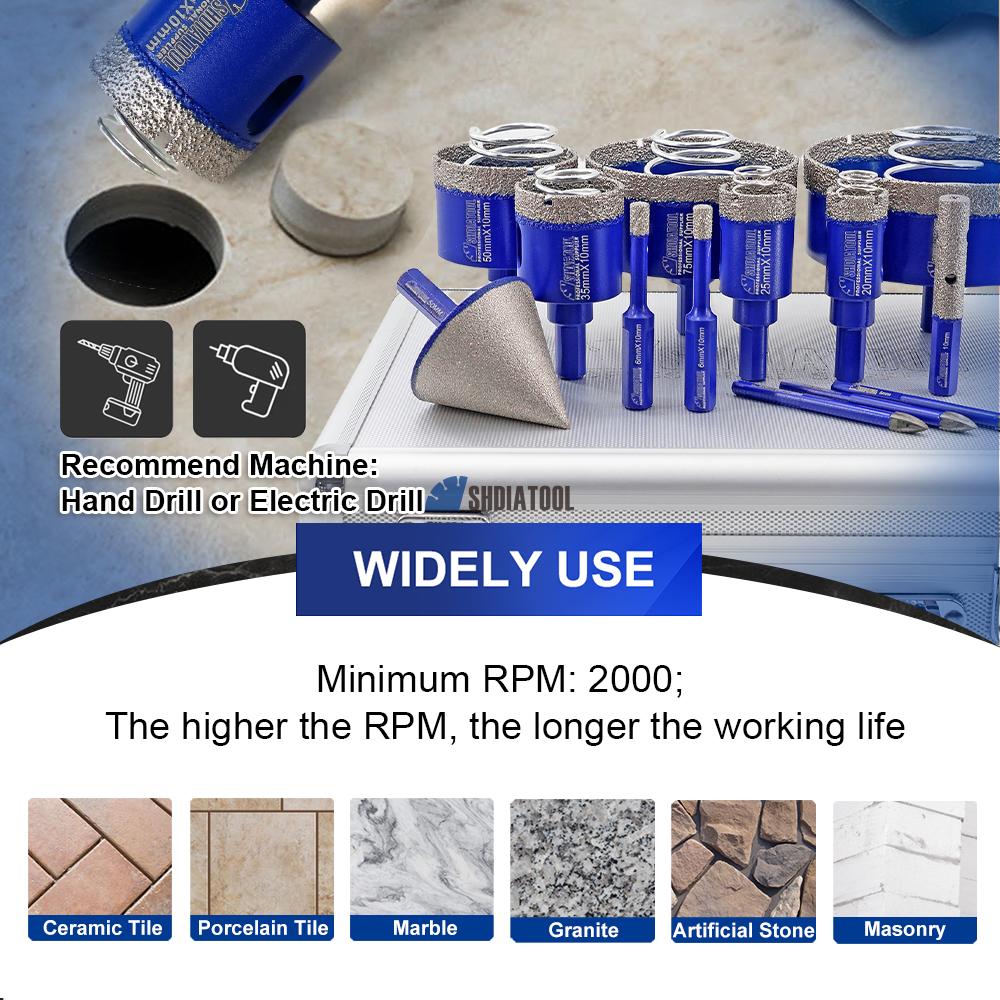Applications in drilling marble, ceramic tiles, porcelain, granite. |
