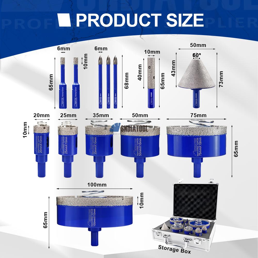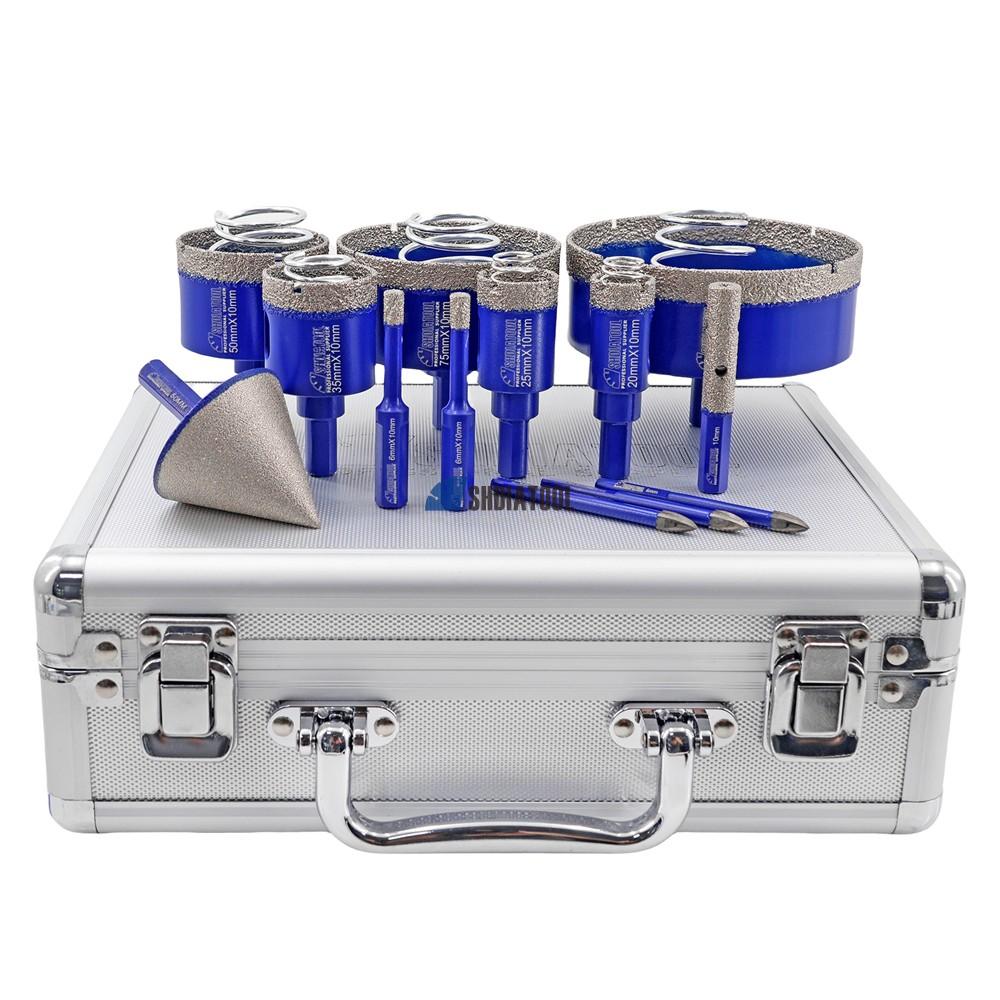SHDIATOOL OEM Triangle Shank Diamond Core Drill Bit Set Brazed Cutting Dry Diamond Hole Saw Hardware Tools Kit