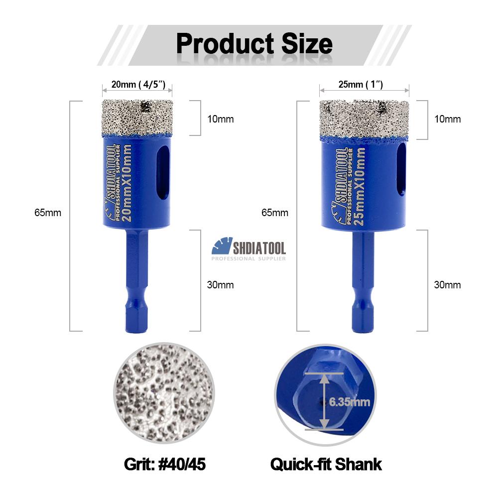20/25mm Vacuum Brazed Quick-Fit Shank Diamond Tools Cutting Bit Hole Saw Diamond Core Drill Bit Drilling Bits for Granite Marble