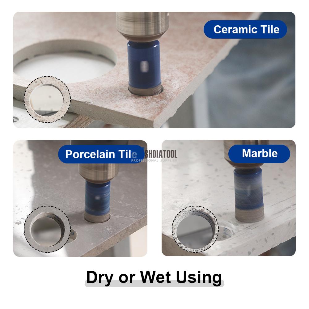 This diamond drill bit features a Quick-fit Shank for rapid installation, compatible with most standard handheld drill and impact drill chucks. Its simple setup saves valuable working time. Equipped with high-quality electroplated diamond cutting edges, it delivers exceptional wear resistance and cutting efficiency, effortlessly handling tiles, glass, ceramics, stone, and marble.