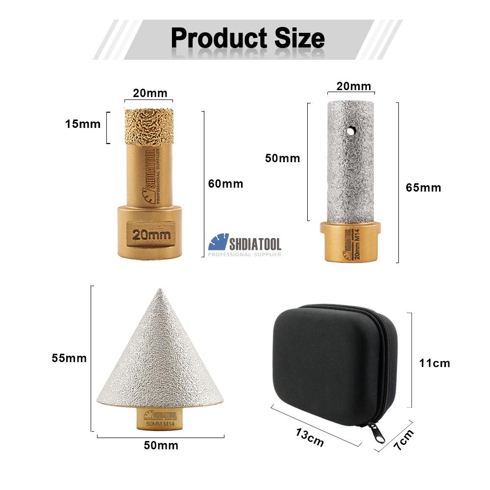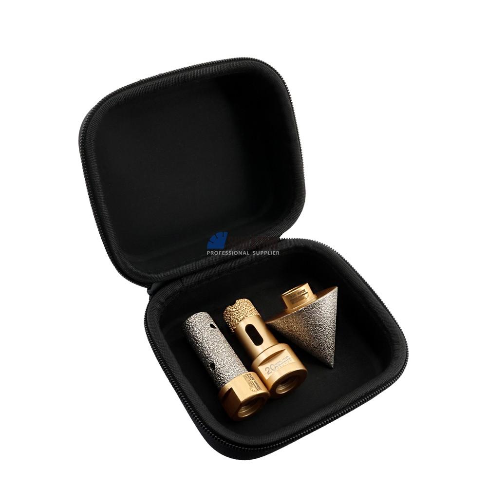 Maximize efficiency and finish quality with our Vacuum Brazed Diamond 3-in-1 Tool Set – the ultimate all-in-one solution for drilling, profiling, and edge finishing on the hardest and most delicate surfaces. All tools are vacuum brazed using advanced metallurgical bonding technology, ensuring maximum diamond exposure, superior heat resistance, and extended tool life.